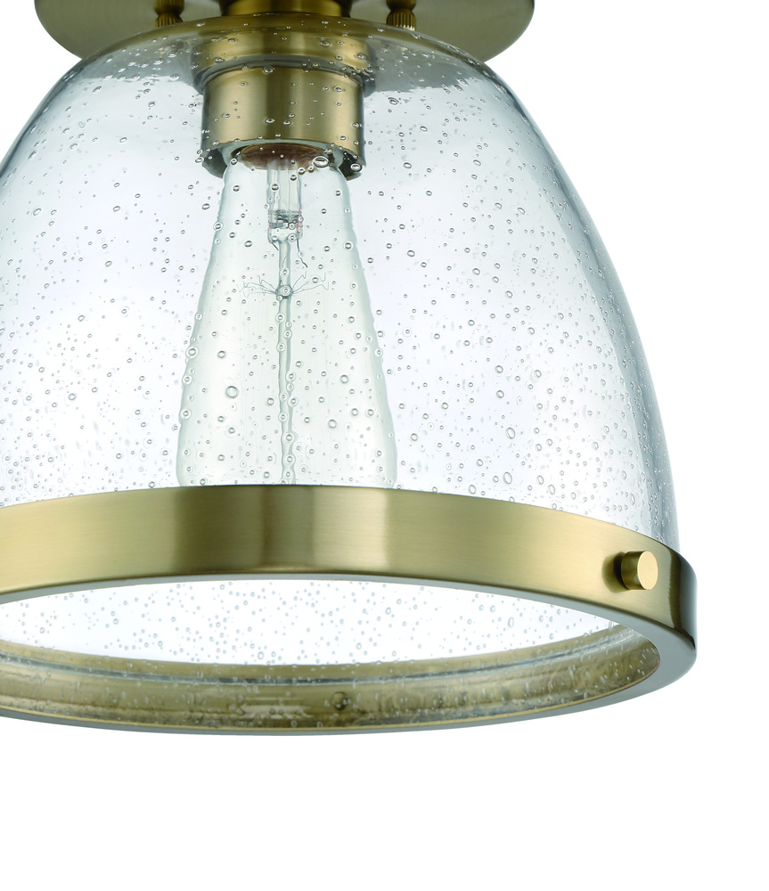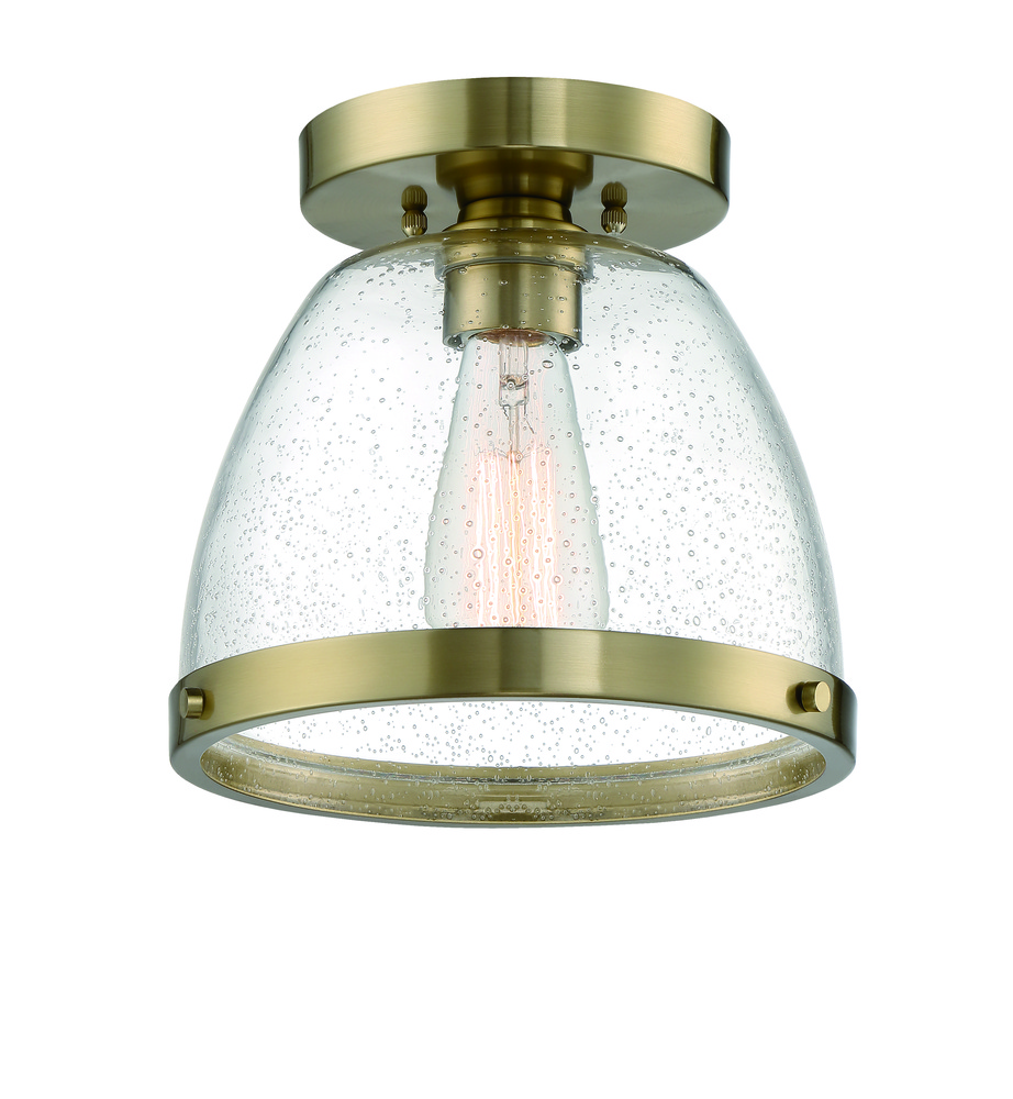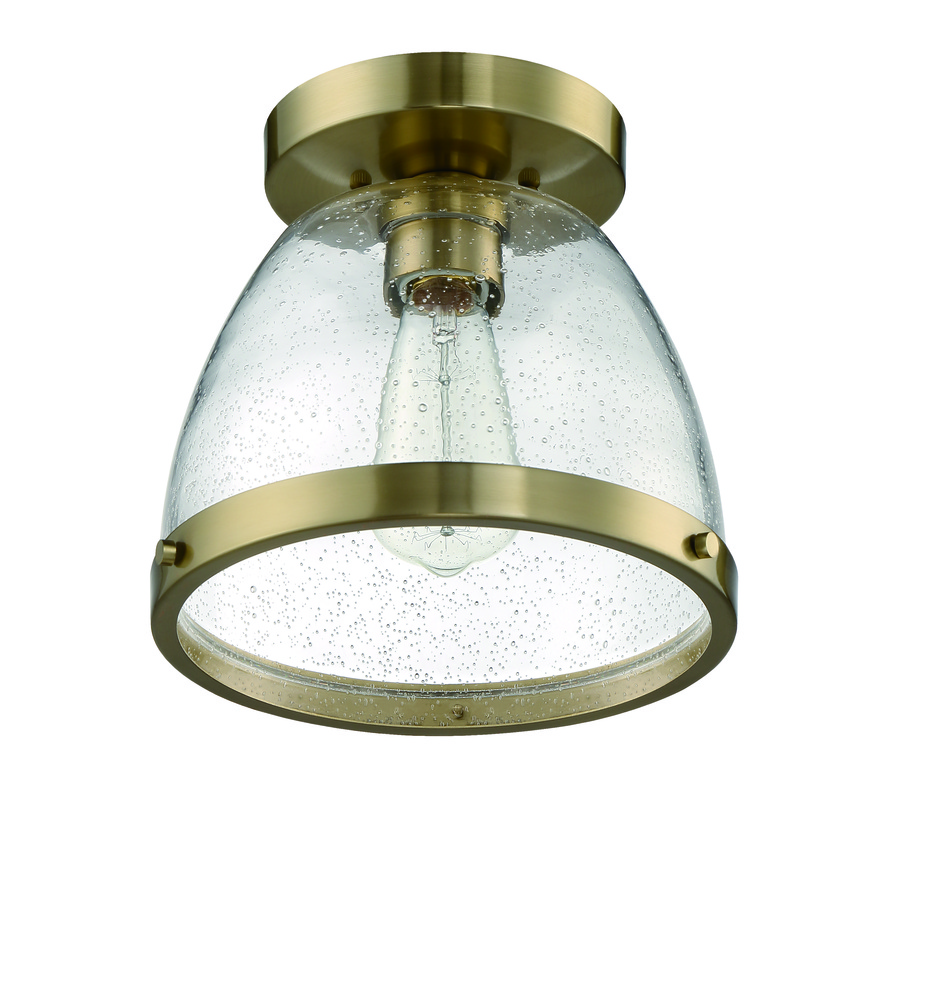 Light illuminates the clear seeded glass shade of these flushmounts from our Lodie Collection . Featuring two sizes offered in three finishes, the Lodie Flushmount Collection offers the clean transitional styling and excellent light without all the fuss.