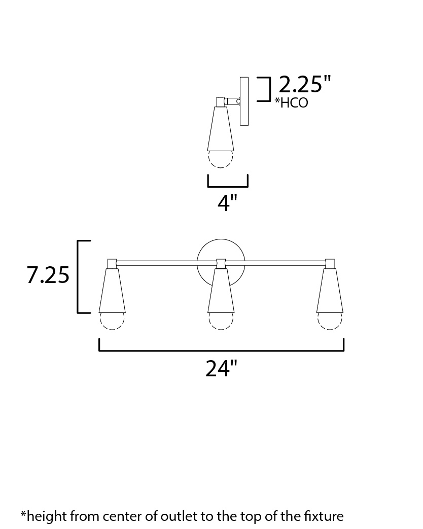 A classic mid-century look, the Lovell collection features two sizes of sputnik chandeliers and streamlined sconces perfect for bath vanity applications. Available in a Black/Satin Brass finish combination. Light bulbs nest inside the metal cones to become