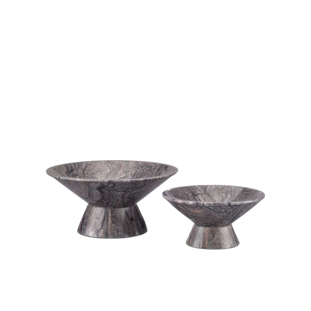The Lubo Breccia Small Bowl is made of Breccia marble, which has a swirling personality as haunting as the milky way at night. The black footed bowl will be a chameleon in an interior, as it will be just as fitting for holding decorative objects in a main living space as it will be for displaying fruit on a kitchen island. The surfaces will vary from piece to piece.