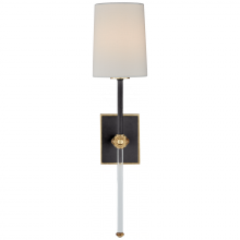 Lucia Medium Tail Sconce in Celadon and Crystal with Linen Shade