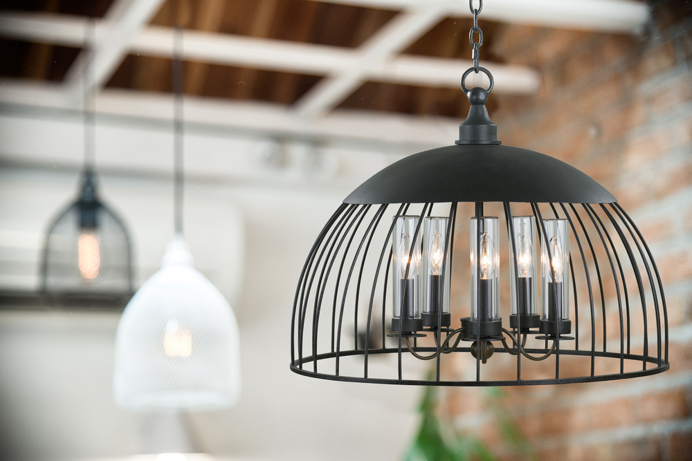 This Indoor/Outdoor collection features vintage inspired open cage design with clear threaded glass covers for protection from the elements in a simple Natural Iron finish.