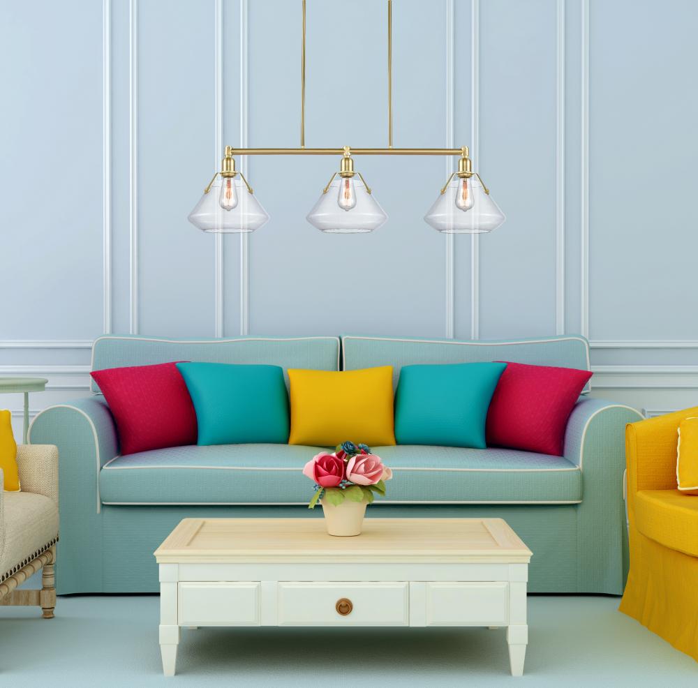 Luna - 3 Light - 42 inch - Satin Brass - Clear Shade - Cord hung - Island Light
