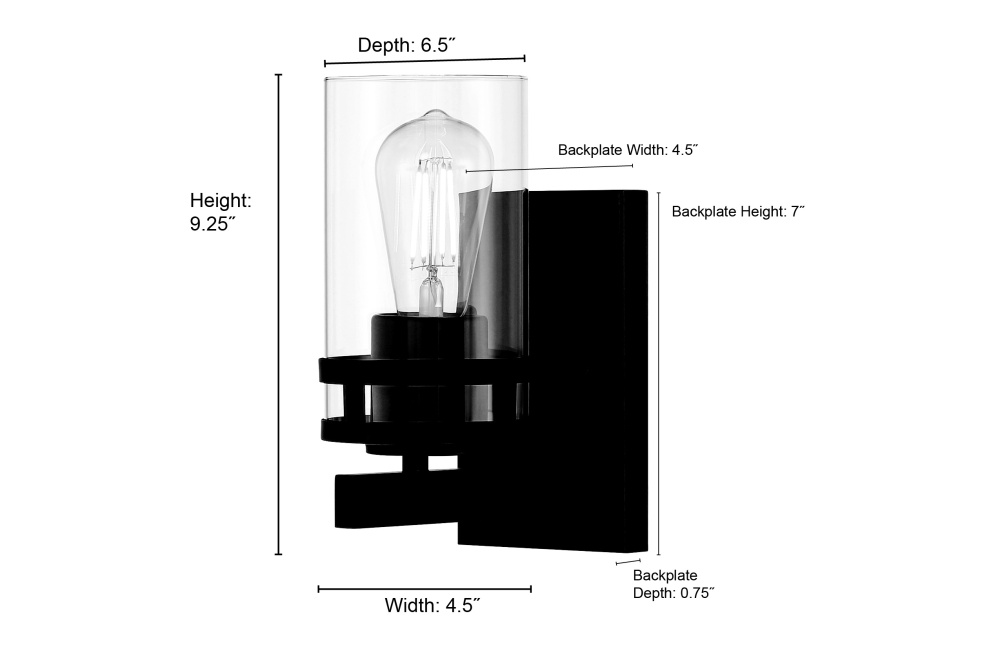 This light fixture is 4.5''L x 6.5 ''W x 9.25''H.