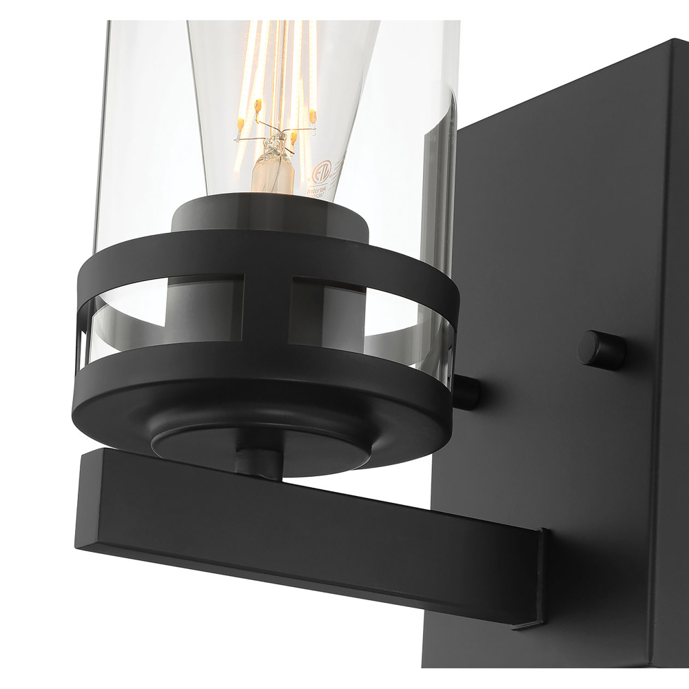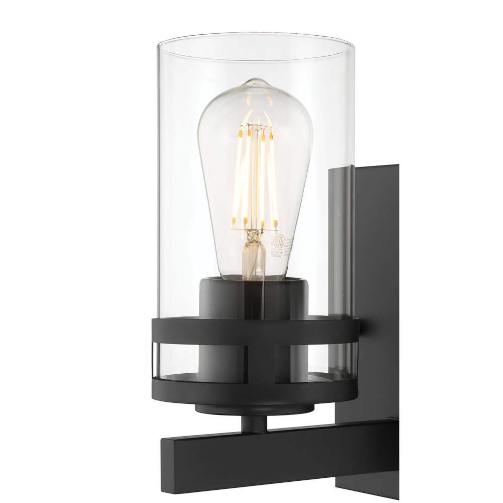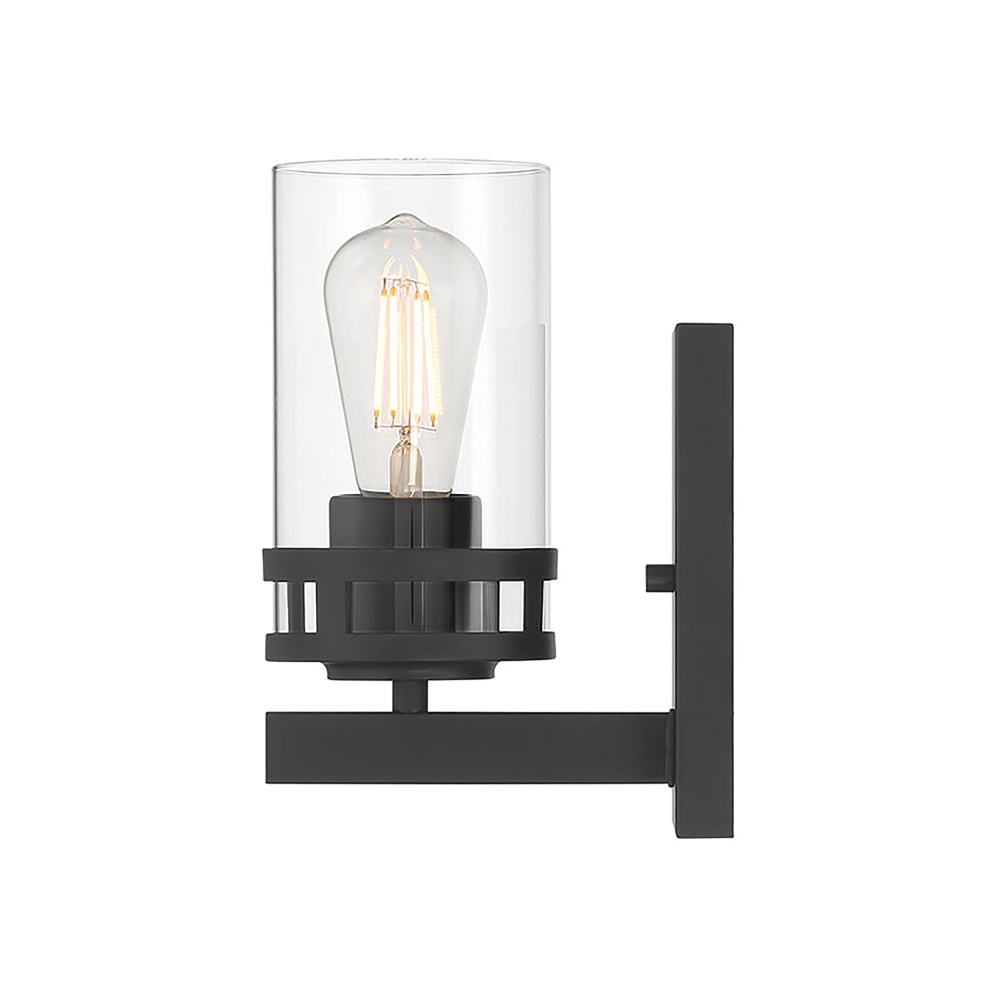 Bauhaus inspired banded metalwork forms the signature look of the Lundun Collection. The geometric design of the fixtures is coupled with clear glass cylindrical shades for a dynamic creating perfect illumination from hallway through to kitchen and bath. Finished in matte black or modern gold these timeless designs are available as 1-light mini-pendant, 3-light flush mount, 1-light sconce and 2, 3 or, and 4-light vanity bar.