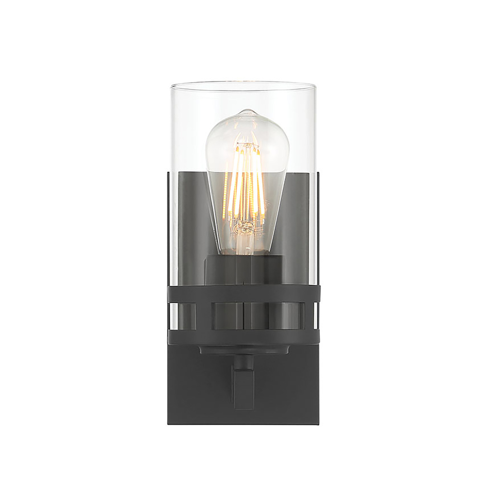 Our Lunden wall sconce features decorative bands and a cylindrical shade.