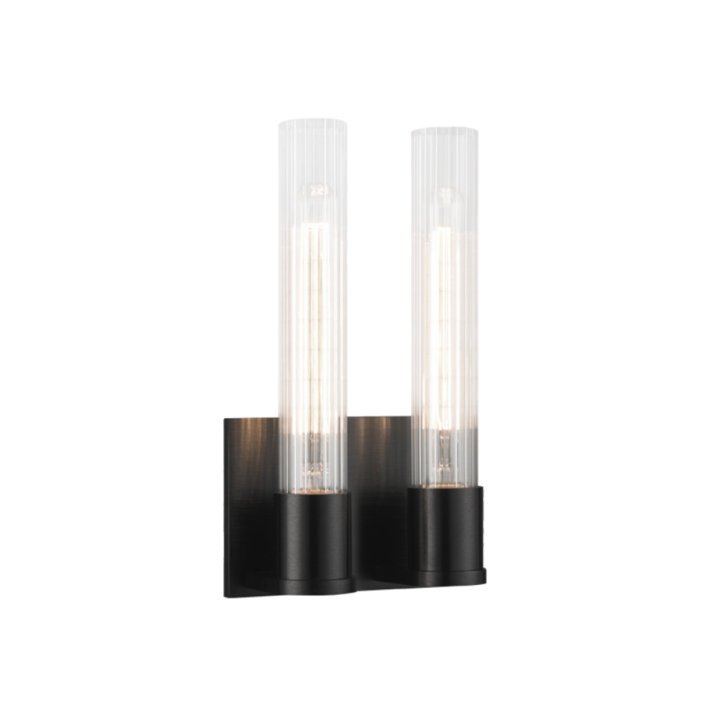 Lyndon is an elegant fixture designed with beautiful long ribbed clear glass paired with a rectangular canopy. Reminiscent of a traditional candle holder with a contemporary edge.This timeless series is available in 2 sizes and 2 finishes.