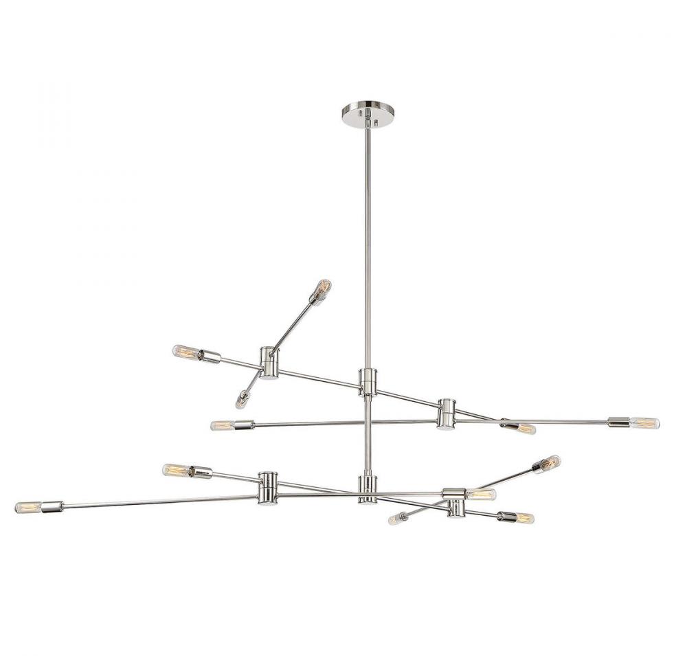 The open, structured look of the Savoy House Lyrique 12-light two-tier chandelier is a great choice for today's stylish interiors. The arms are adjustable, allowing you to create custom looks and change them on the fly. Finished in polished nickel. The hanging height is adjustable and this fixture can be mounted on a sloped ceiling. Chandeliers can be used in a wide variety of spaces, including but certainly not limited to dining rooms, living rooms, great rooms, bedrooms, kitchens, foyers, offices and even bathrooms! Bulbs not included. Try using stylized bulbs such as tubular shape for a different look! The polished nickel finish can be matched with nickel hardware or mixed with hardware in other finishes. Lyrique is perfect for contemporary style spaces and any room that has an edgy touch. When you choose a Savoy House lighting fixture, you can be certain you’ve selected a piece that will withstand the test of time.