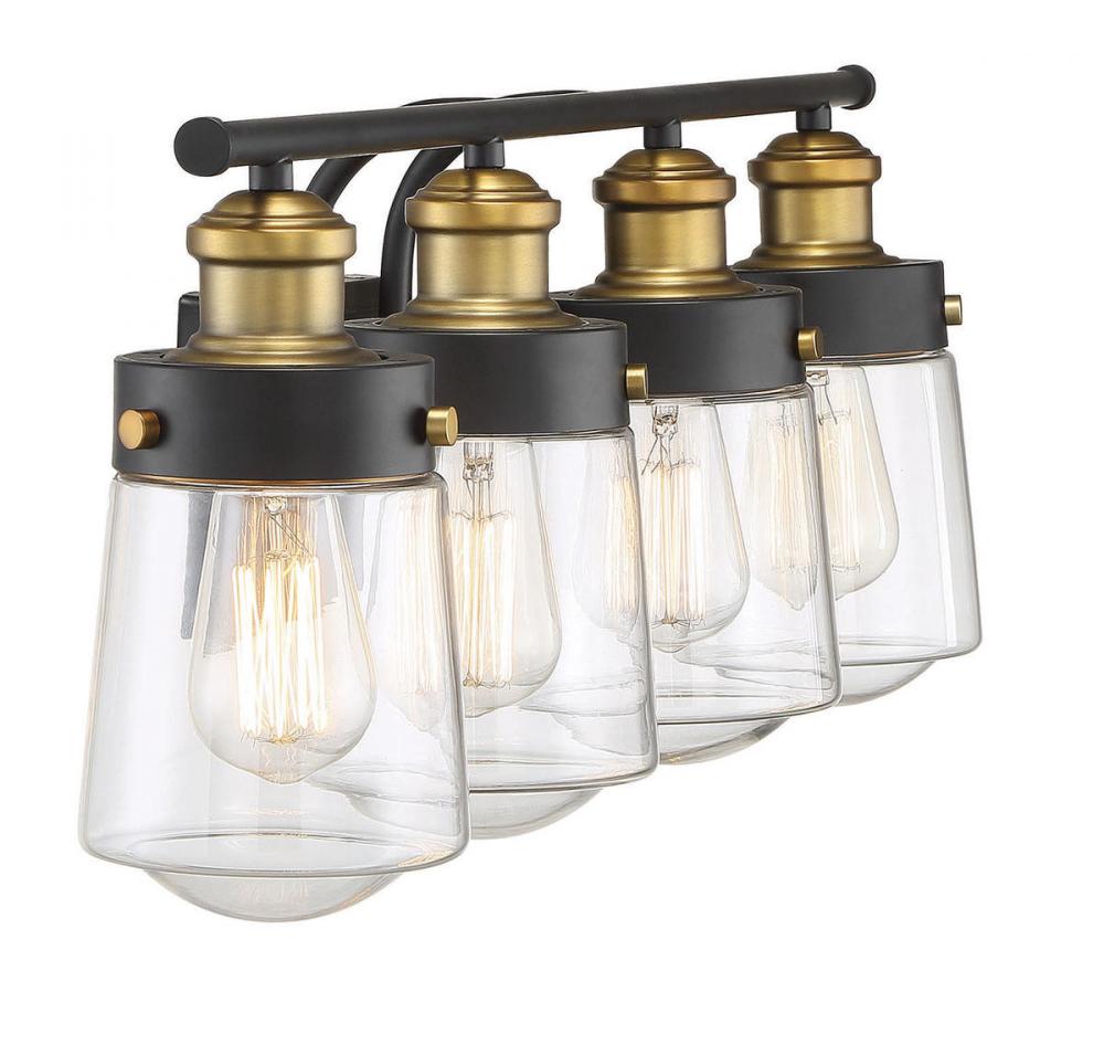 Savoy House 8-2069-4-51 - Macauley 4-Light Bathroom Vanity Light in Vintage Black with Warm Brass