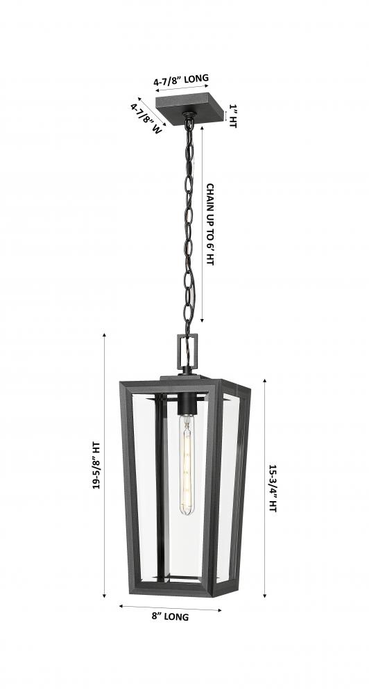 Madison - 1 Light - 8 inch - Matte Black - Chain Hung - Coastal Outdoor Post Lantern