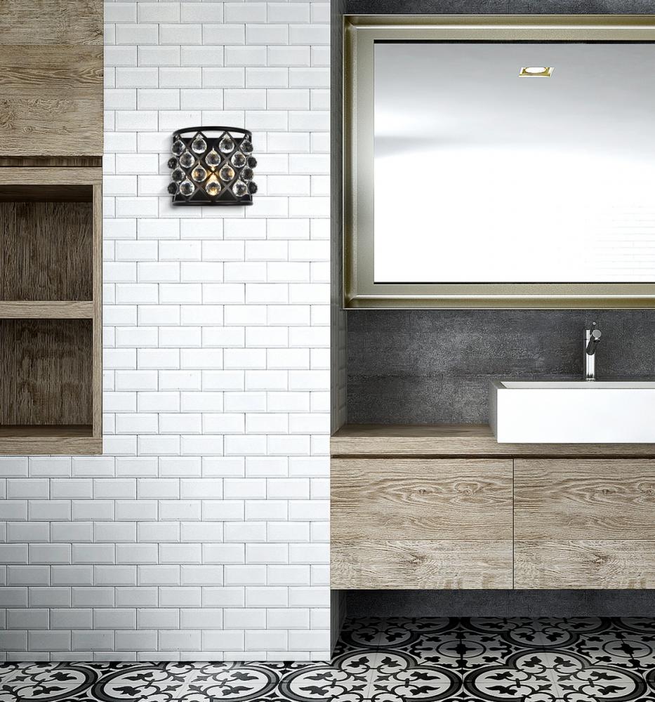 All the delicate beauty of a soap bubble paired with the steadfast strength of steel and iron. Madison collection wall sconces add the right touch of radiance that's ideal for a hallway, bedroom, or bathroom. Semicircular forged-iron grid and steel backplate available in golden-iron, Matte Black, and polished-nickel finishes. Hand-polished, multi-faceted crystal spheres available in clear give these wall sconces the perfect finishing touch.