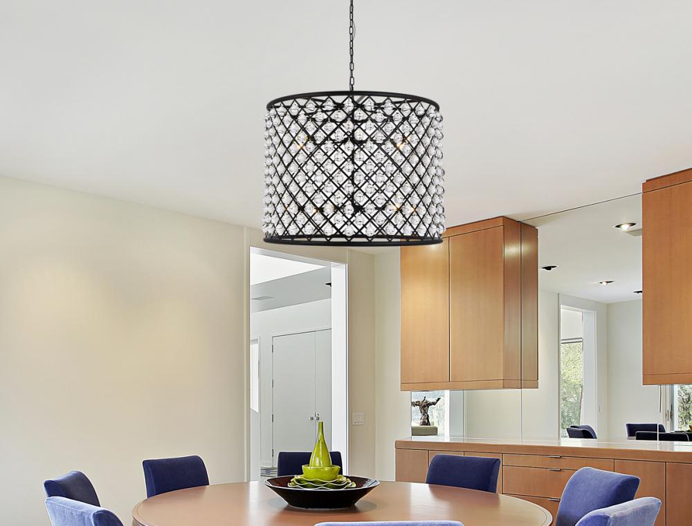 Elegant 1204D8MB/RC - Madison 1 light Matte Black Pendant Clear Royal Cut Crystal