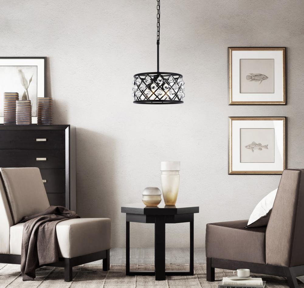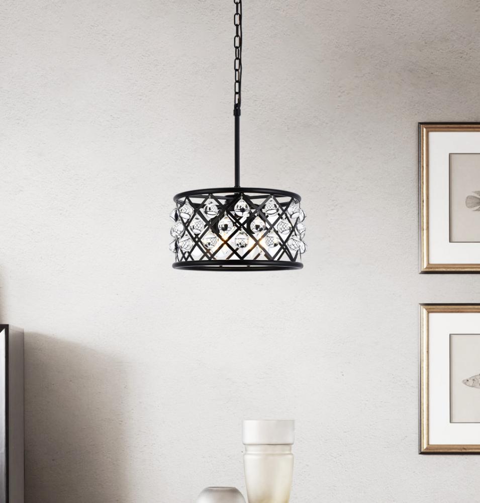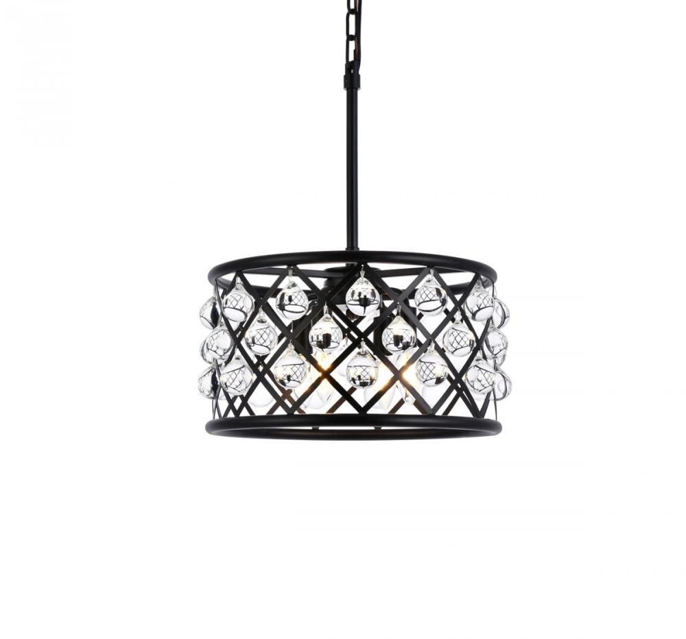 Elegant 1204D14MB/RC - Madison 3 light Matte Black Pendant Clear Royal Cut Crystal