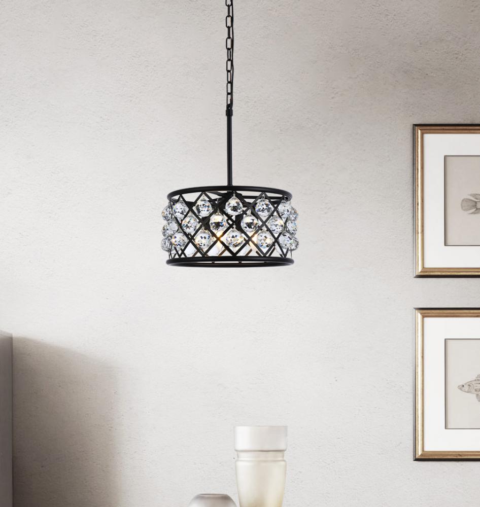 Elegant 1204D14MB/RC - Madison 3 light Matte Black Pendant Clear Royal Cut Crystal