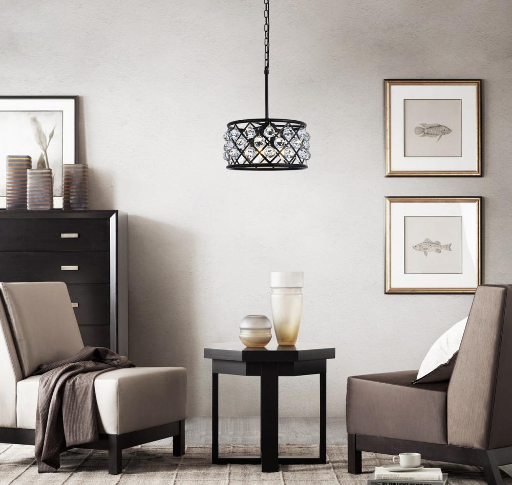 Elegant 1214D16MB/RC - Madison 4 light Matte Black Pendant Clear Royal Cut Crystal