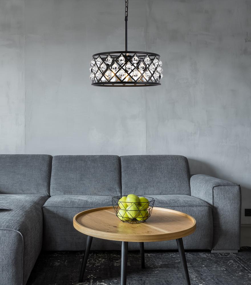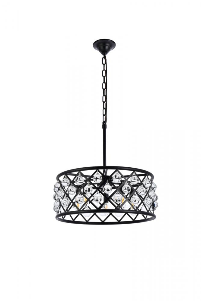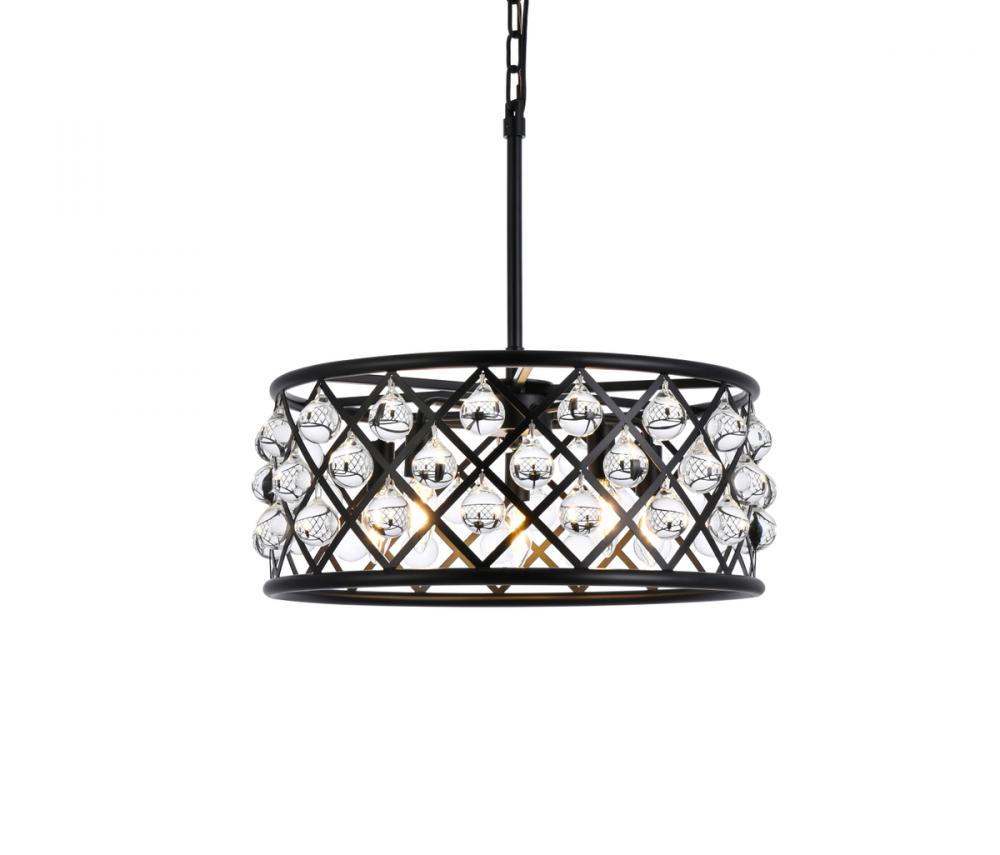 Elegant 1213D16MB/RC - Madison 4 light Matte Black Pendant Clear Royal Cut Crystal