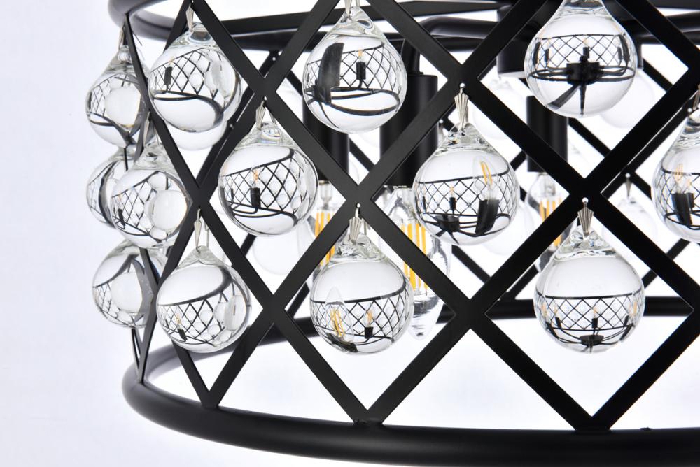 Elegant 1204D8MB/RC - Madison 1 light Matte Black Pendant Clear Royal Cut Crystal