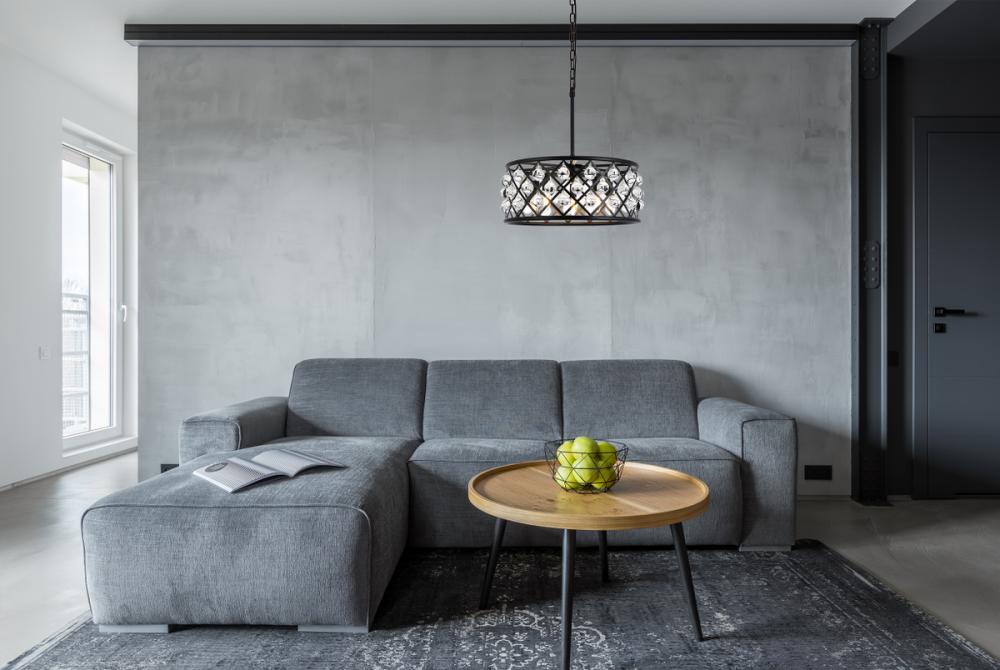 Elegant 1214D16MB/RC - Madison 4 light Matte Black Pendant Clear Royal Cut Crystal
