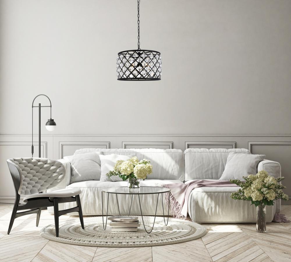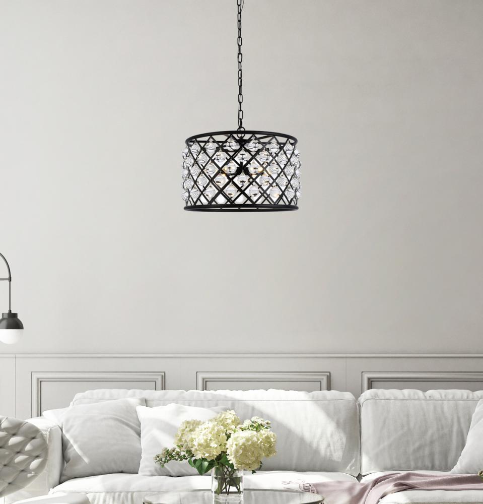 Elegant 1214D16MB/RC - Madison 4 light Matte Black Pendant Clear Royal Cut Crystal