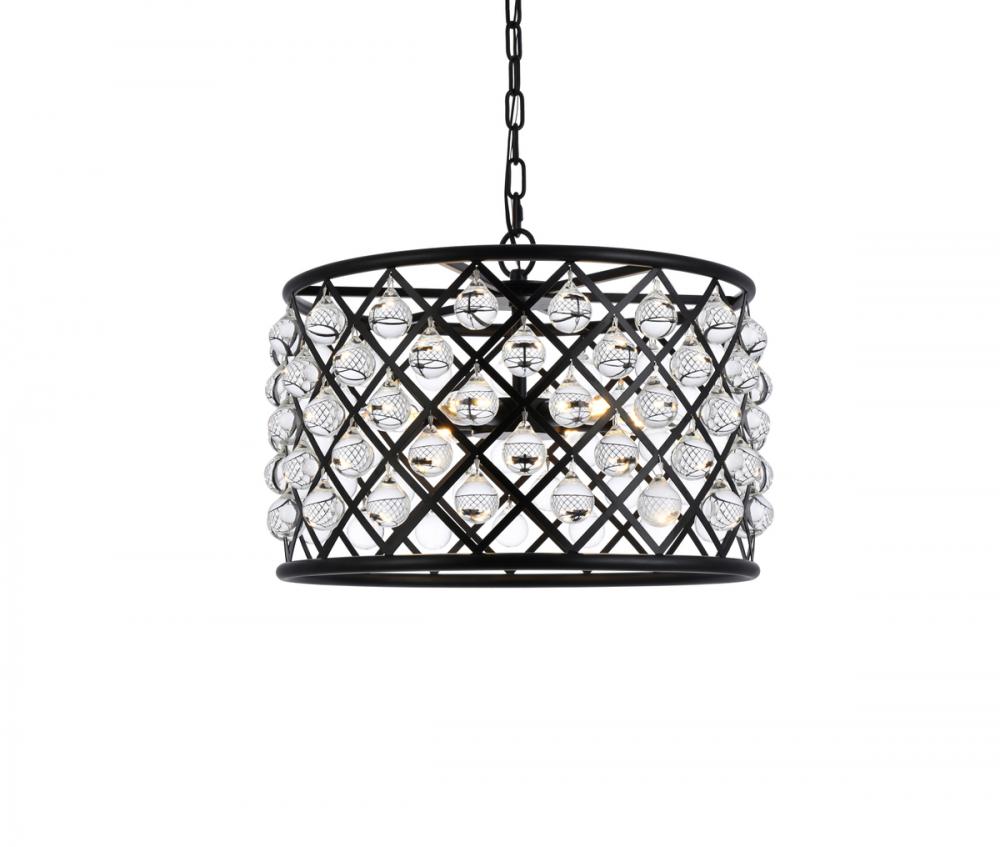 Madison 6 light Matte Black Pendant Clear Royal Cut Crystal