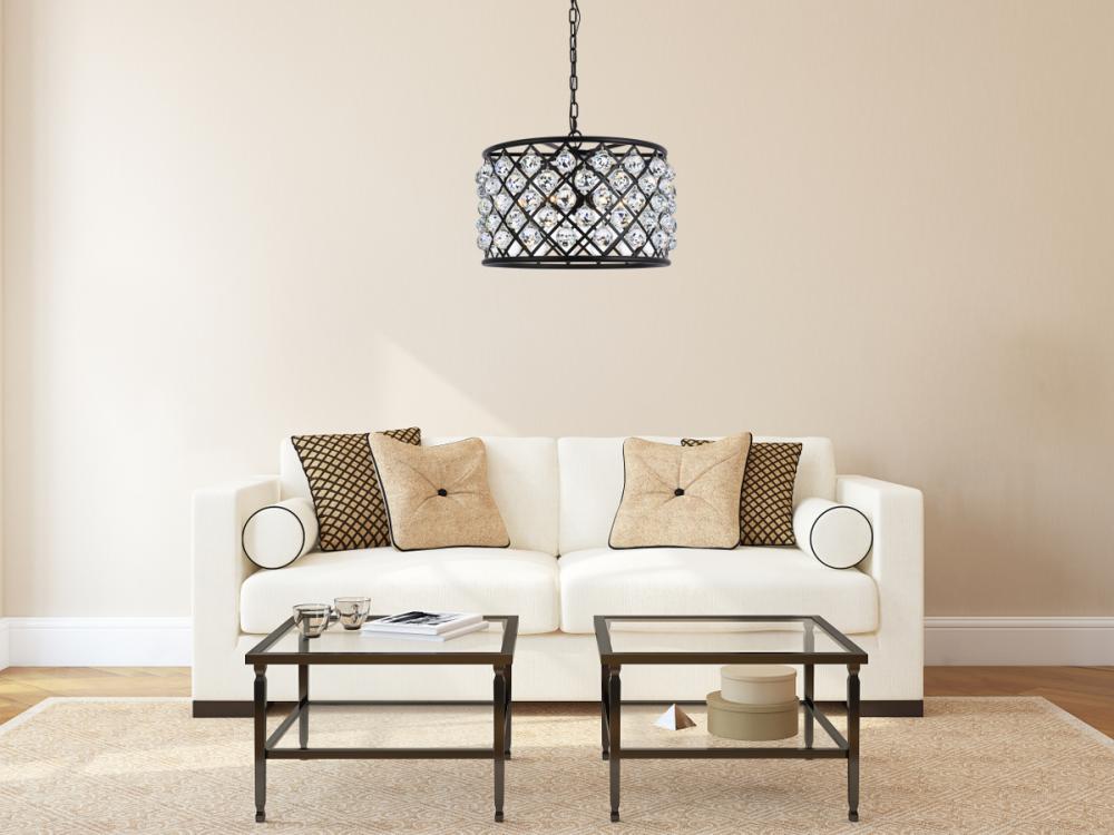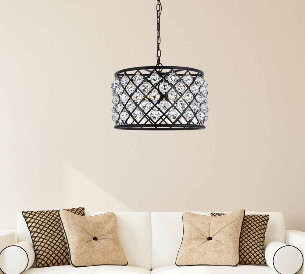 Elegant 1213D16MB/RC - Madison 4 light Matte Black Pendant Clear Royal Cut Crystal