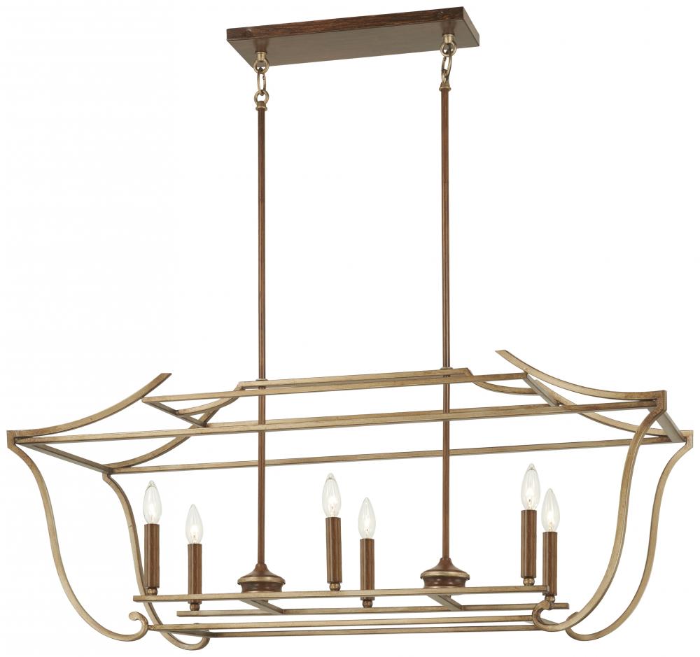 6 Light Island in Pale Gold with Distressed Bronze
