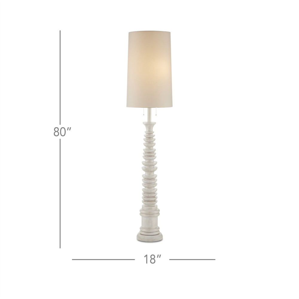 Rising like a temple spire on a mountainside in a faraway land, the Malayan White Floor Lamp has the elemental flair that gives master woodworkers bragging rights. The fluted body is made of rubber wood in a whitewash finish. The tall, thin linen shade placed atop this composition from the Phyllis Morris Collection makes it all the more commanding. The dual pull-chains are delicately sized to keep this design elegant.