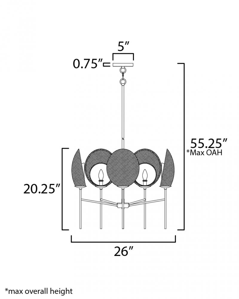 A classical chandelier that transports you to a tropical paradise, the Maldives collection features hand woven wicker shades that elegantly curve around precisely cut opal white glass. Suspended on slender supports of steel finished in Matte Black, the han