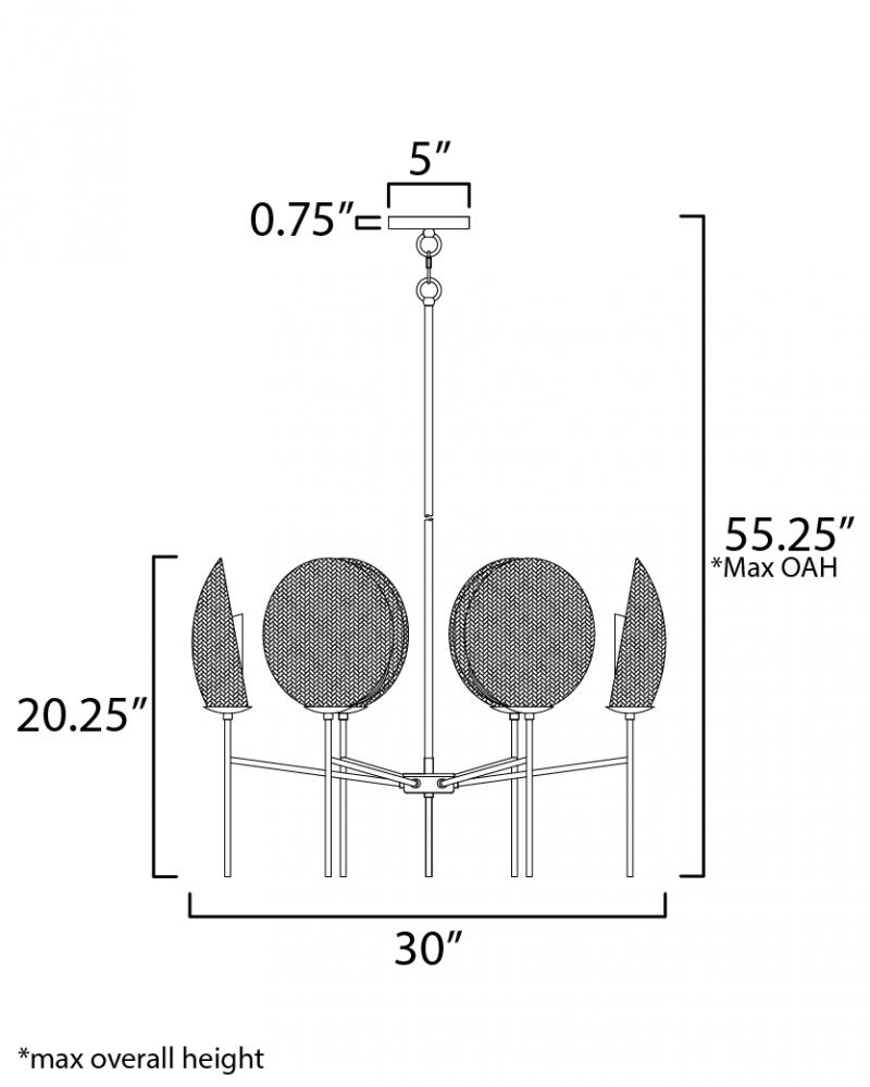 A classical chandelier that transports you to a tropical paradise, the Maldives collection features hand woven wicker shades that elegantly curve around precisely cut opal white glass. Suspended on slender supports of steel finished in Matte Black, the han