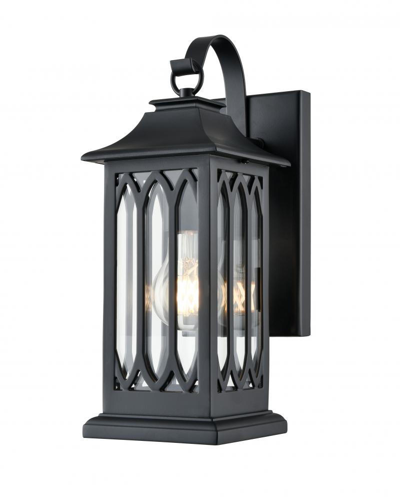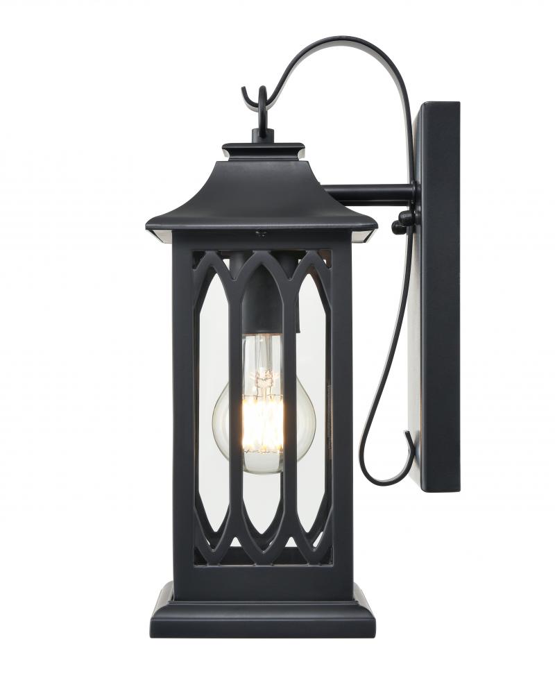 Exquisite metalwork creates wonderful light play for the Mallorey Family of outdoor lighting. The aluminum housing, finished in powder coated black, is punctuated with a modern spin on Gothic-style arches and the traditional hook-and-arm profile. The fixtures are available as 1-, 2-, and 3-light sconce, 3-light pendant, or 3-light post, and create a dramatic effect across any exterior.