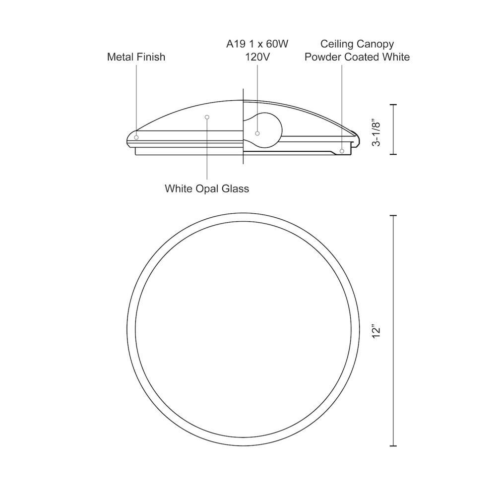 Single lamp flush mount ceiling fixture with white opal glass and your choice of brushed nickel or chrome metal finish.