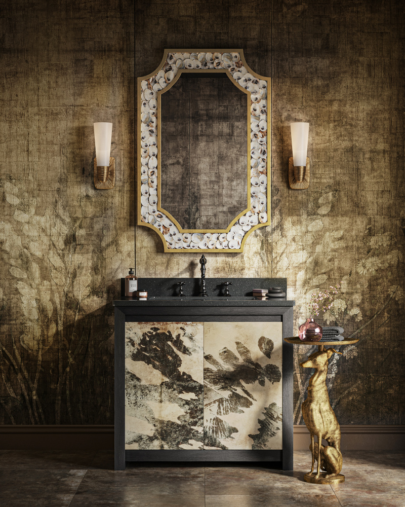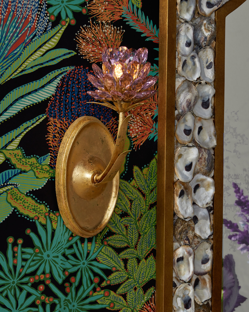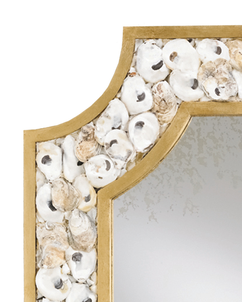 Days by the shore are often more relaxed but that doesn’t mean an interior has to sacrifice luxury. The Margate Mirror is a facile intermingling of casual style and rich good looks. The decorative mirror has oyster shells hand-applied to the interior of its frame by artisans, the contemporary gold leaf finish to which its interior and exterior edges have been treated turning up the volume on opulence. It will draw seaside style into a beach condo or cottage, or be a reminder of past and future nautical delights in any setting. The Margate can be hung horizontally or vertically.