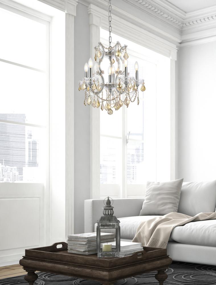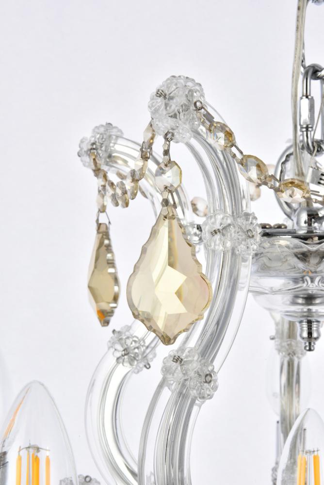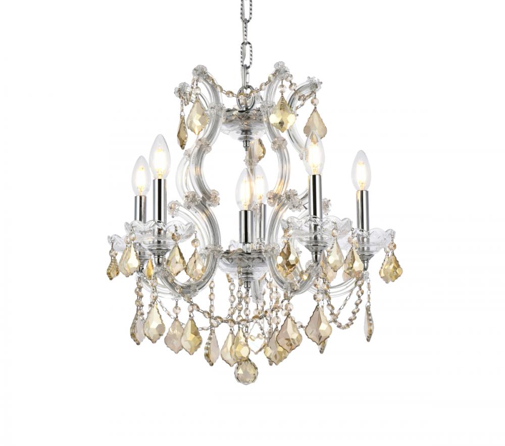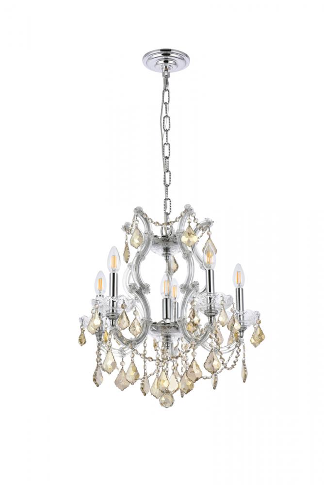 Elegant 2800D20C-GT/RC - Maria Theresa 6 light Chrome Pendant Golden Teak (Smoky) Royal Cut Crystal