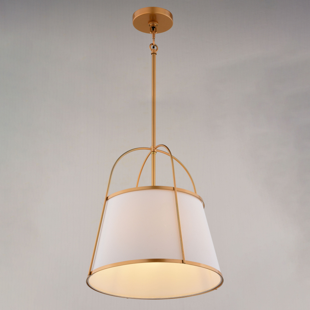 Craft a warm and inviting ambiance with the Marion pendant. The classic design, reimagined for today's homes, complements both traditional and modern interiors. The on-trend mystic gold finish and crisp tapered white linen fabric shade deliver a touch of mid-century modern sophistication, effortlessly transforming any room. Designed to impress, the Marion ceiling light fixture is the perfect upgrade for homeowners with discerning taste.