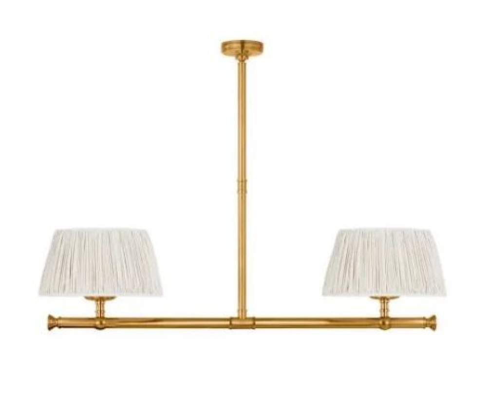 Marion 56" Linear Chandelier in Antique-Burnished Brass with Champage Silk Pleated Shades