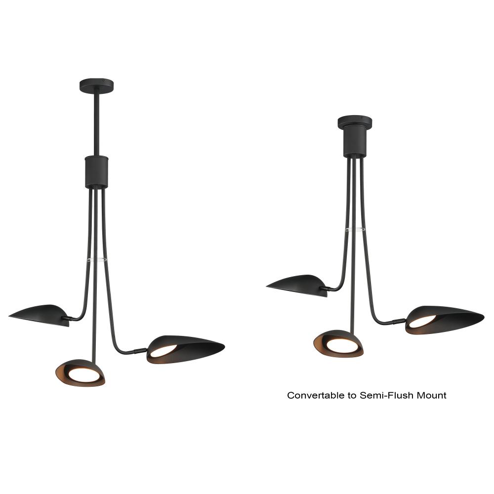 Drawing the outdoors in, the inspiration for this piece combines iconic modern lighting with biophilic forms. Long slender armatures descend in organic slopes to domed, ovoid shades that appear leaf-like. Finished in Matte Black the collection features coo