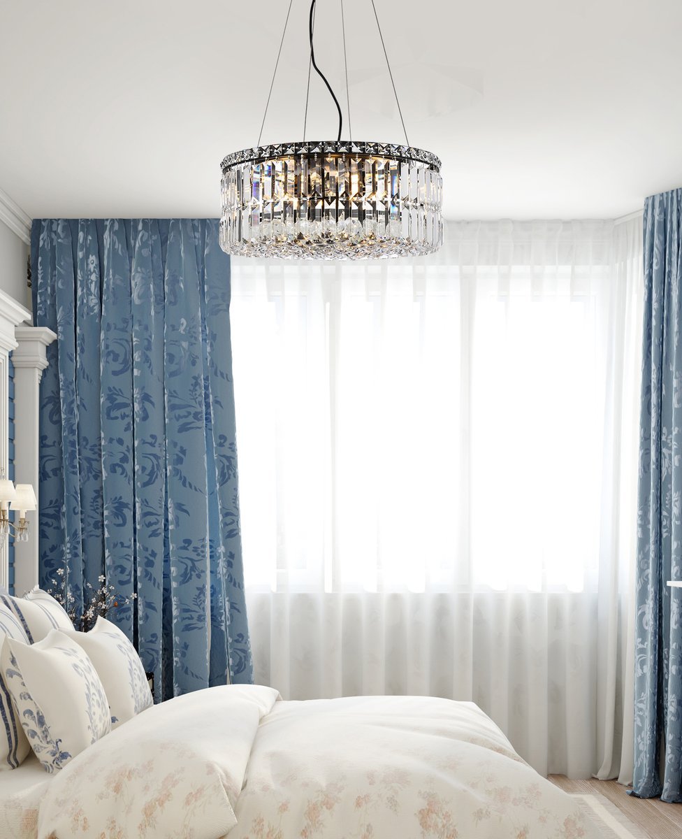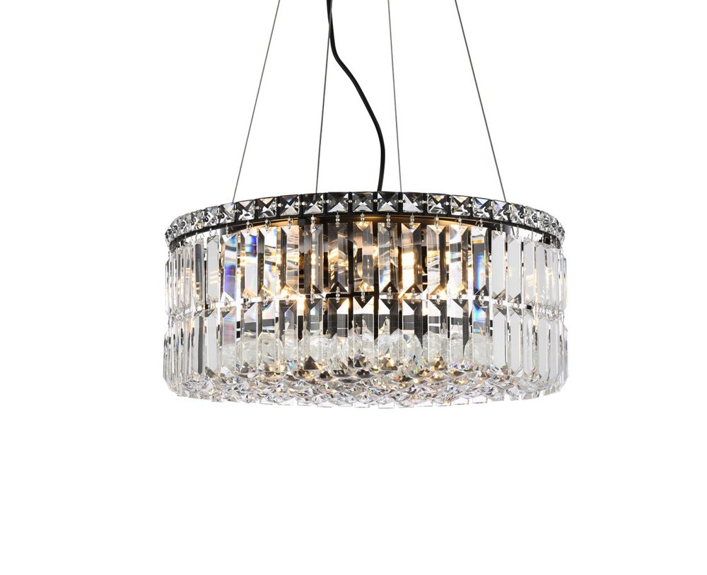 A riot of shapes and textures, Maxime collection hanging fixtures sparkle in a mosaic of crystal tiles. Square and rectangular precision-cut crystals form the flamboyant exterior while faceted crystal balls create a bubbled effect for light to shine through beneath. A mischievous asymmetrical hanging tube adds a touch of whimsy to this structured design. Available in a black or chrome finish with clear crystals, these lamps are a luxurious addition to a dining room, stairwell, foyer, or living room.