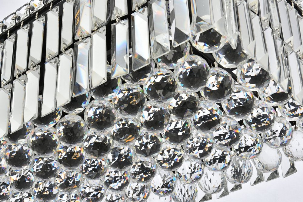 A riot of shapes and textures, Maxime collection flush mounts sparkle in a mosaic of crystal tiles. Square and rectangular precision-cut crystals form the flamboyant exterior while faceted crystal balls create a bubbled effect for light to shine through beneath. Available in a black or chrome finish with clear crystals, these lamps are a luxurious addition to a kitchen, stairwell, foyer, or living room.