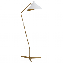 Mayotte Large Offset Floor Lamp in Hand-Rubbed Antique Brass with Black Shade