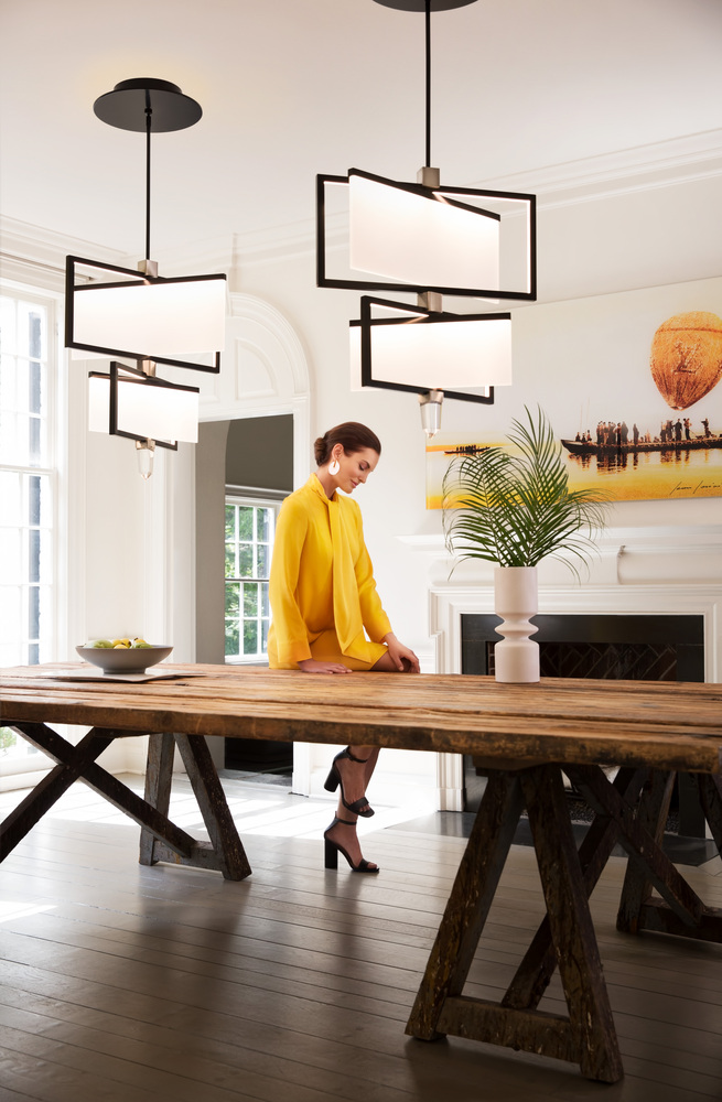 Inspired by the idea of structure combined with movement, Folio is composed of framed, illuminated LED panels that rotate to create diverse angles, infusing a space with crisp modernity.
