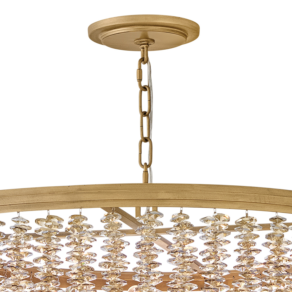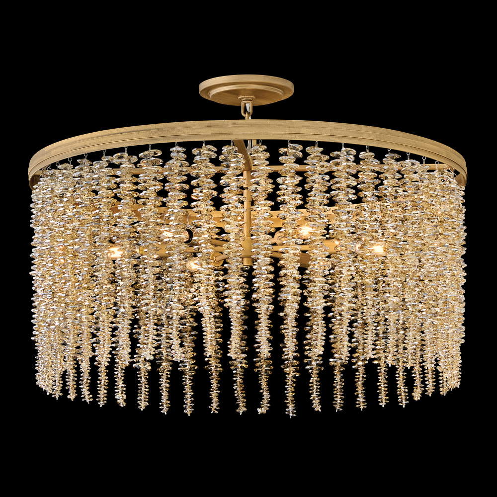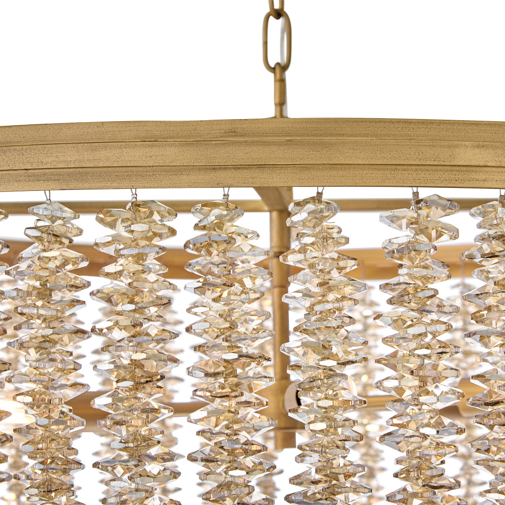 Dripping with glamour, Rubina’s magnificent shade is crafted from individually strung strands of sparkling crystal. A traditional tiered frame accentuates every beautiful refraction with its Burnished Gold finish.