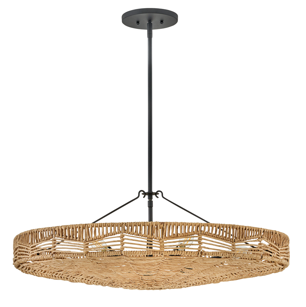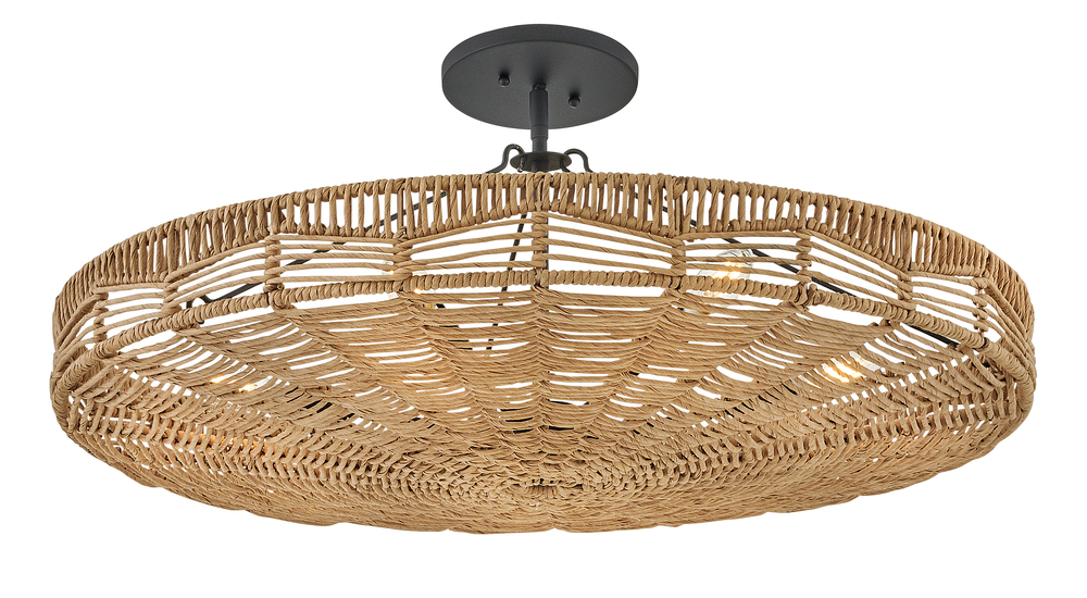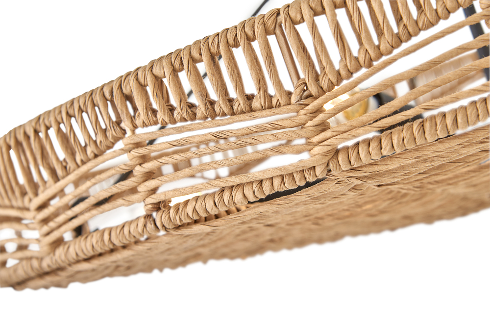 This dazzling design offers striking illumination through a beautiful handwoven pattern. Ophelia radiates with organic elegance as a natural shade adorns a tiered basket frame finished in Black.