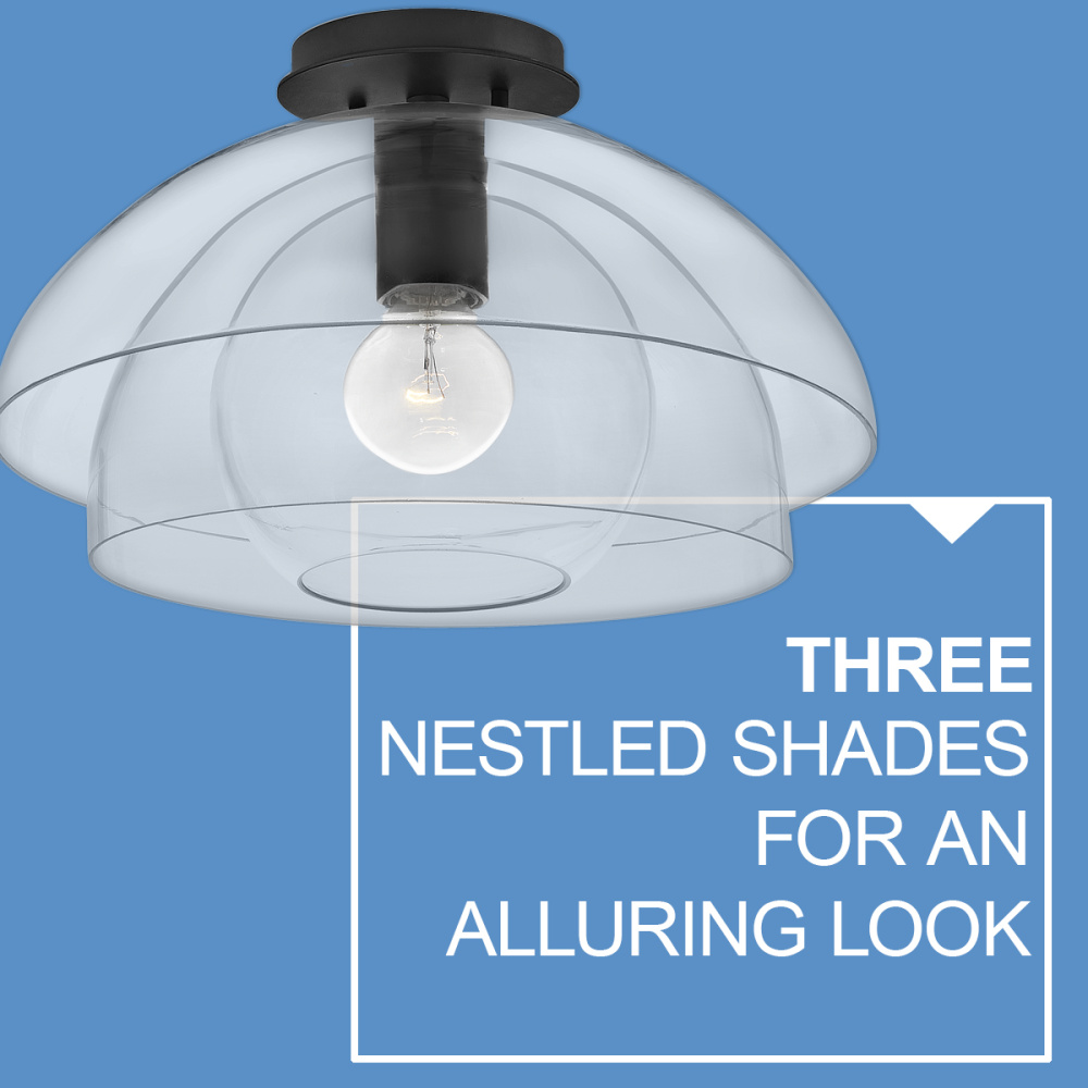 Lotus reveals itself in layers of three concentric clear glass shades nested together in a unique and alluring shape. A true shapeshifter, Lotus can be installed as a pendant or close to the ceiling. Available in either Heritage Brass or Black finish options, this transitional design grows even more glamorous when illuminated.