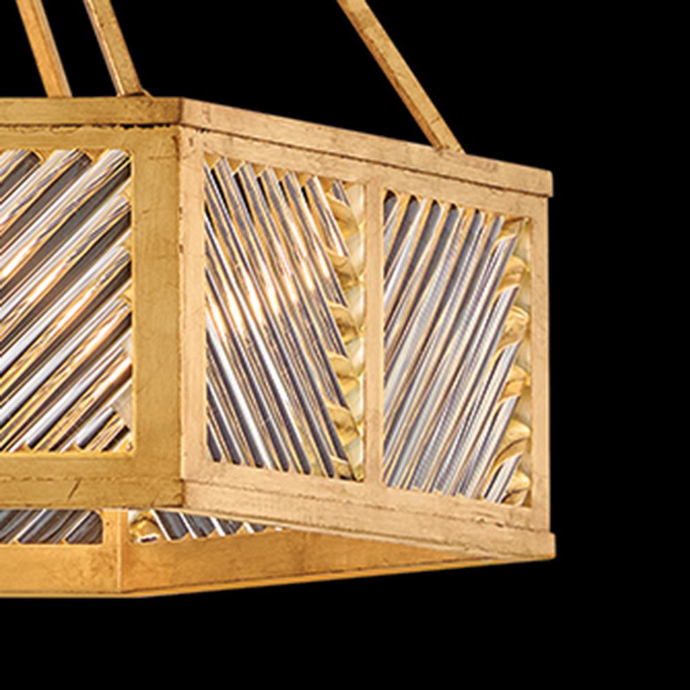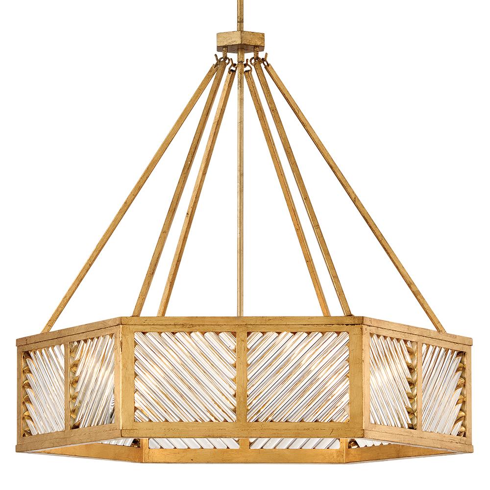 A reimagining of vintage designs from the 40s and 50s, Sura’s transitional, hexagonal Distressed Brass frame creates a glamorous yet understated and tailored appeal. Cylindrical glass rods set at alternating angles echo a soft herringbone pattern, juxtaposing geometry within geometry. Layered details create a reeded effect that is reflective and alluring.