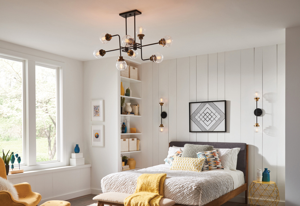 Poppy features clear seedy glass spheres that bubble out of refined, ribbed fitters to create a simple, yet sophisticated silhouette. The dual-finish combinations, Black with Brushed Nickel and Black with Heritage Brass, pair perfectly with a clean backplate or canopy and crisp crossbars to anchor this airy design. Poppy showcases mid-century style with a spectacular spin.