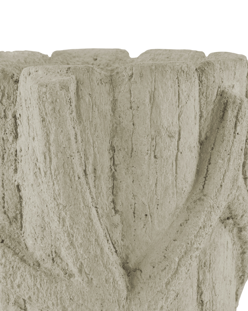 The flowing twig-like details along the ribbed surface of the Medium Faux Bois Planter were hand-applied by artisans who "sculpt" the concrete over a metal frame to look like a rustic faux bois artifact. The Portland finish that settles into the natural crevices enhances the illusion of age that will bring a nice hint of texture to indoor or outdoor settings. Ornamented with tree branches, the concrete planter sprouting with plants will fool the eye into thinking it is a true antique.