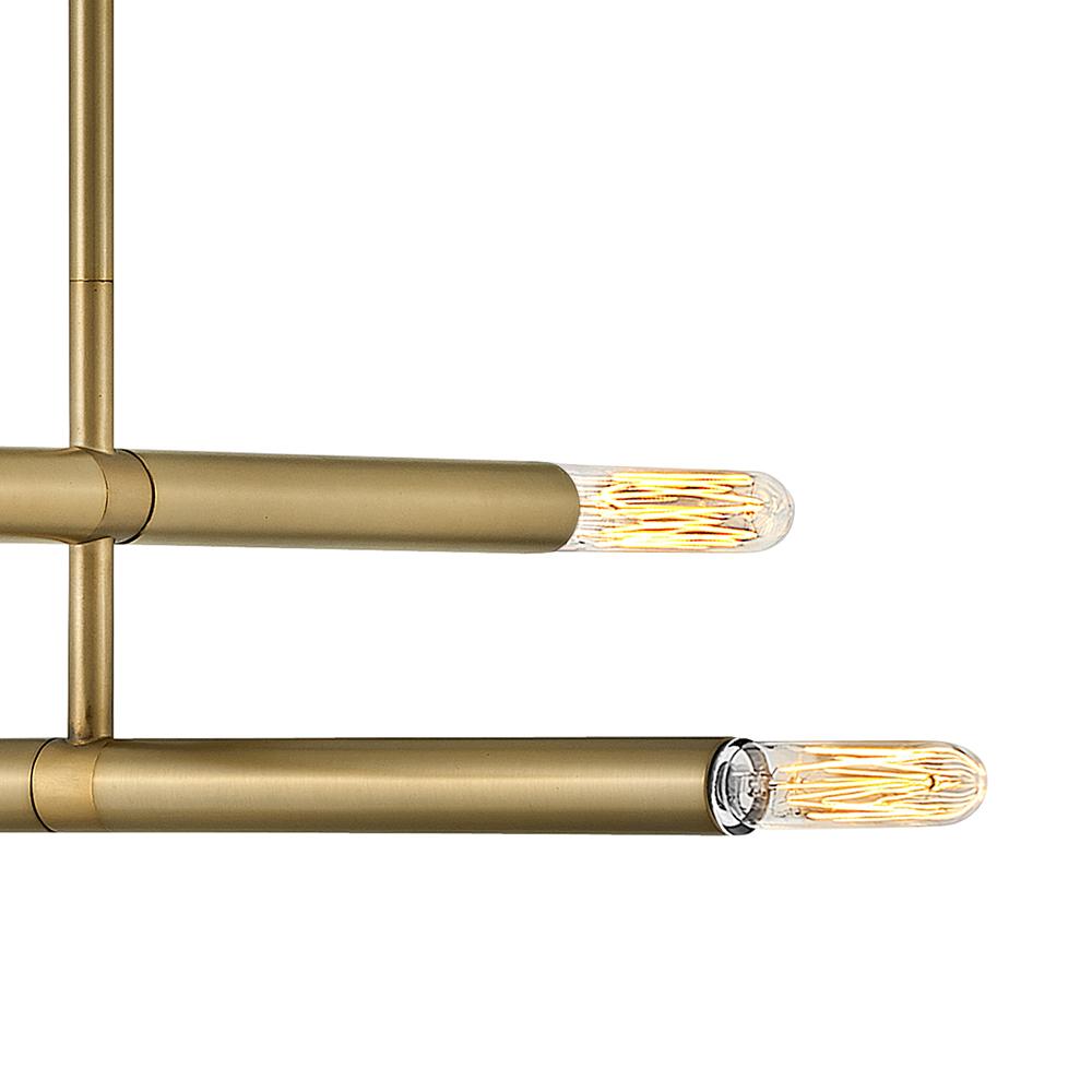 Millie tells a linear love story with elongated cylindrical rods extending outwards, creating a sleek statement that commands attention. This design establishes immediate style credibility thanks to its iconic midcentury modern origin, ensuring visual intrigue in either Black or Lacquered Brass finishes. To complement Millie's chic style, we recommend G16.5 bulbs.