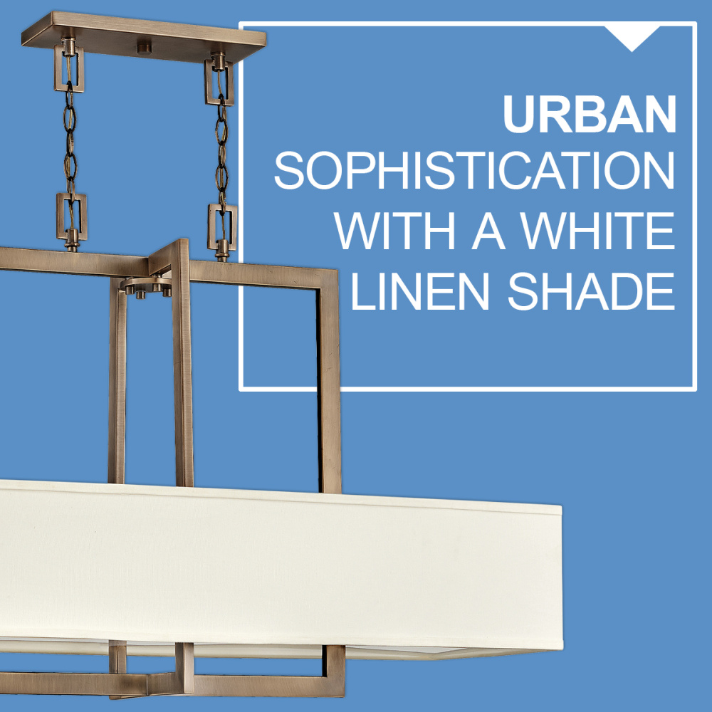 Hampton is a modern transitional design, offering the ultimate in urban sophistication. The minimal, rectangular frame is softened by a contemporary off-white linen drum shade.