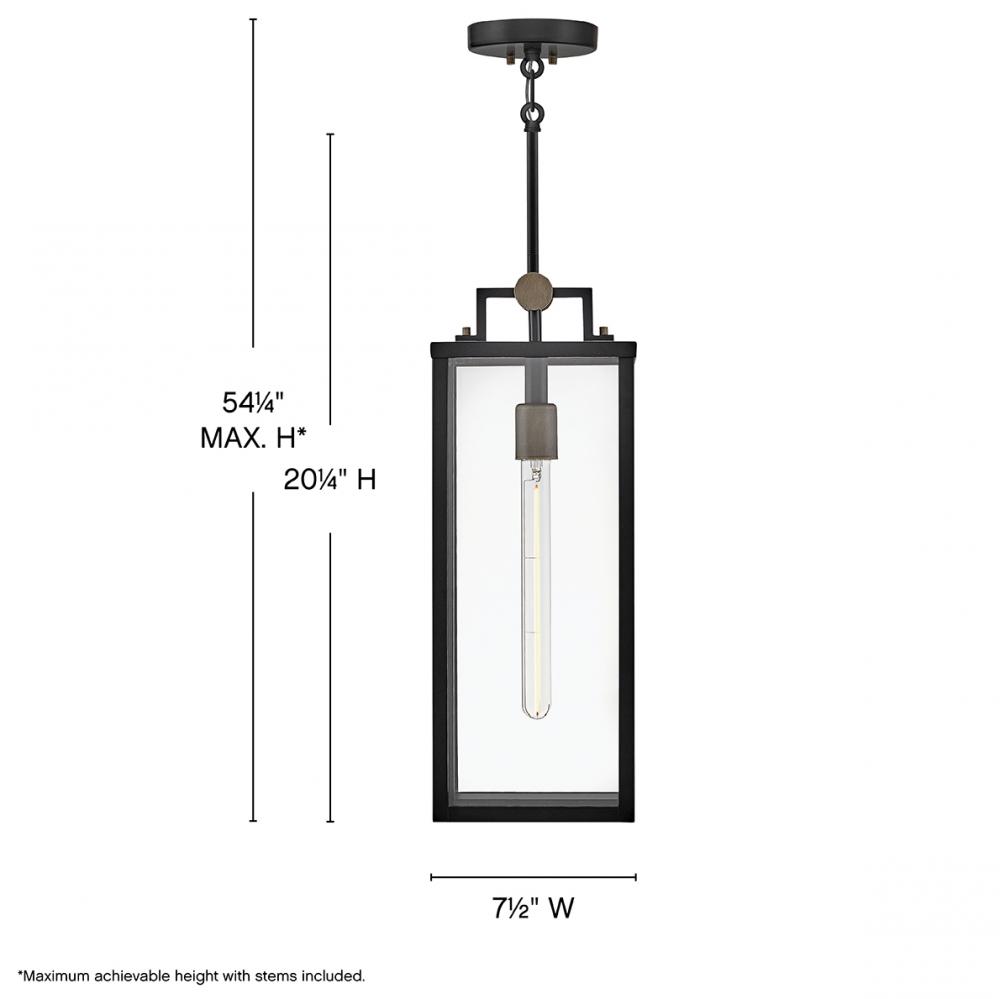 Striking and airy, Catalina breathes modern simplicity into outdoor spaces. Oversized clear glass, a unique single socket, and a two-tone Black with Burnished Bronze finish pair perfectly to present a statement-making fixture. The finishing touch is a floating effect created by the classic rectangular lantern design suspended from a top knob.