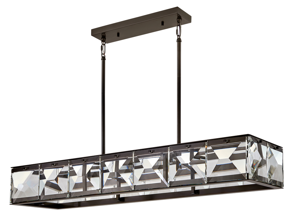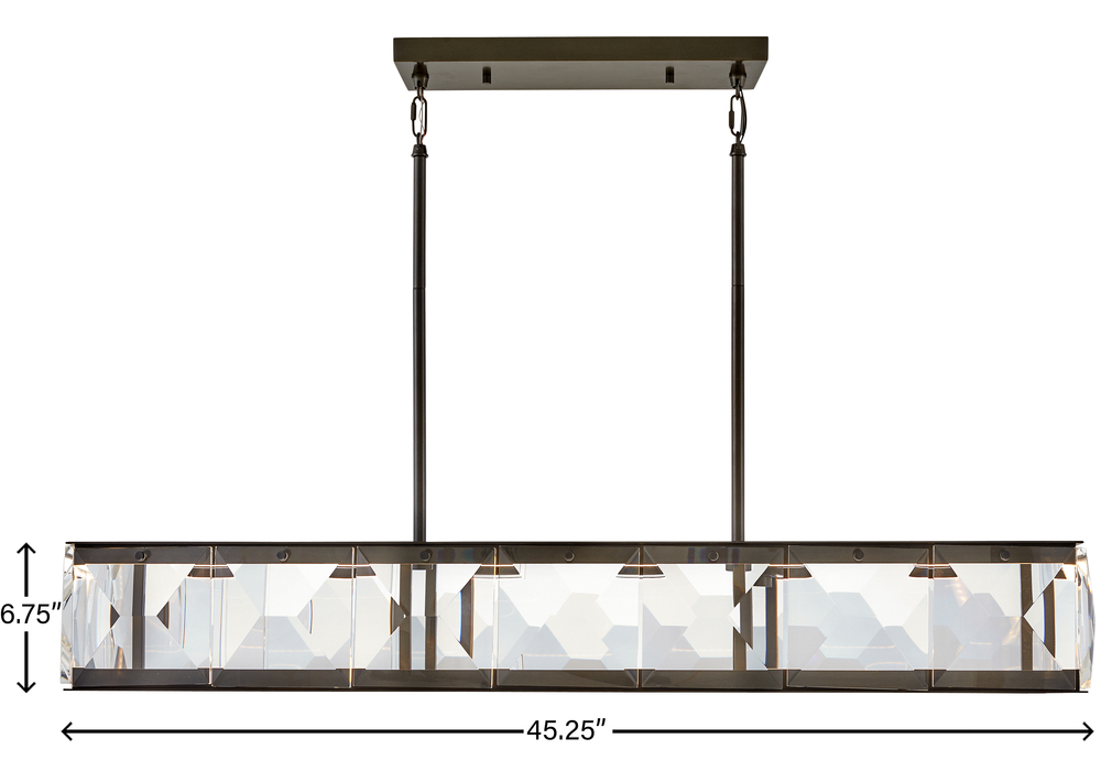 Jolie is a unique blend of sophistication, style, and technology. Integrated LEDs are sleekly concealed within gleaming Heritage Brass rings at the top and bottom of the design. Robust blocks of faceted crystal radiate with light, creating a transfixing silhouette while providing outstanding illumination.