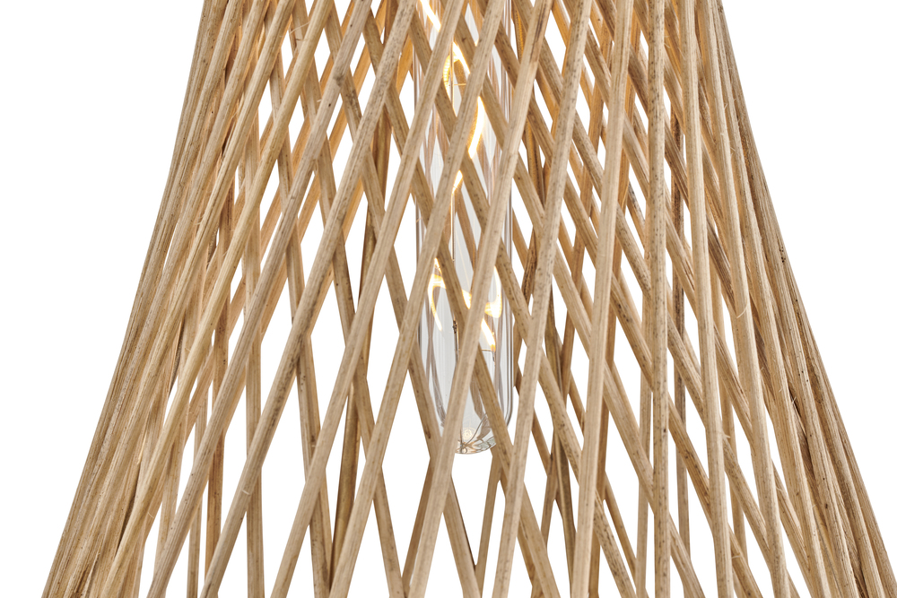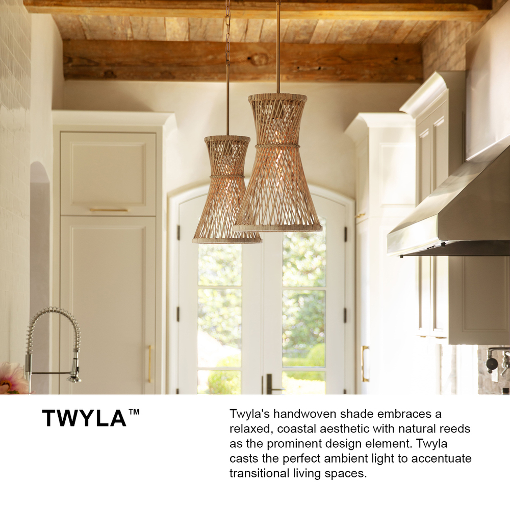 Twyla's handwoven shade embraces a relaxed, coastal aesthetic with natural reeds as the prominent design element. Twyla casts the perfect ambient light to accentuate transitional living spaces.